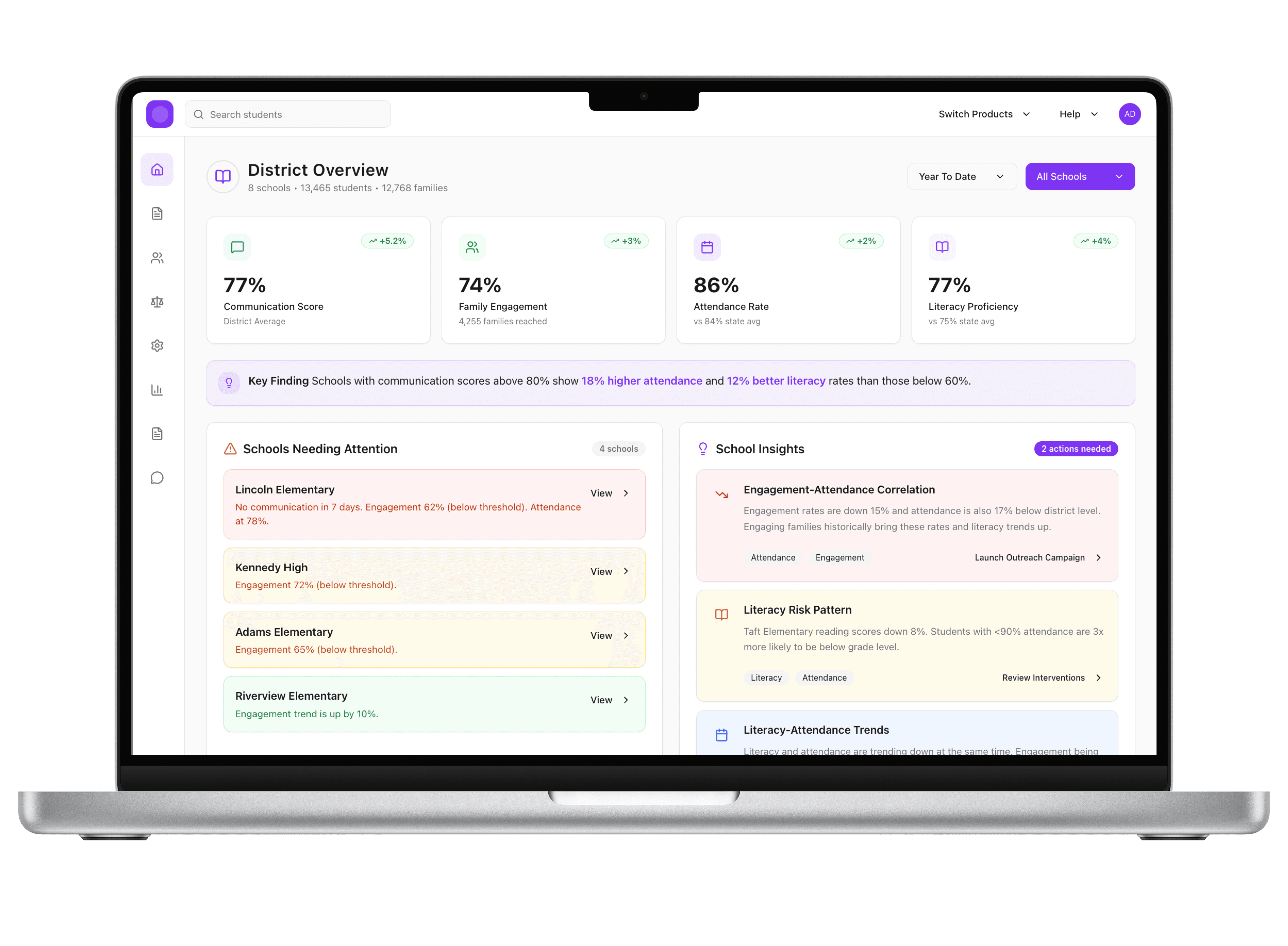 Educators are drowning in data but often don’t know where to start. Key signals, such as students at risk, curriculum gaps, or the impact of interventions can go unnoticed until it’s too late. Current tools prioritize communication or reporting rather than insight generation, meaning decisions are often reactive and inconsistent across classrooms and schools.
